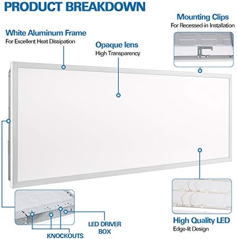 HIGH PERFORMANCE – Smoothly dimming compatible with 0-10V dimmers. No flashing, No noise. Smooth PMMA cover with uniformity perfect light distribution.