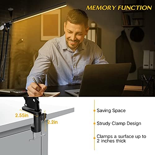 LED desk lamp is suitable with a 5V/2A USB adapter, which can make the power output more stable, faster and safer.The light board is made by high-quality aluminum with good heat dissipation and the last life is up to 50,000 hours.Dimmable Office Lamp has a 360° rotating base and LED lamp and a 180° adjustable swing arm. Desk lamp with clamp has 3 color temperature modes(3000K-6000K), which is warm light, warm white light and cool light.The clamp lamp has 10 brightness levels.The table lamp with foldable design is convenient to carry and save space.