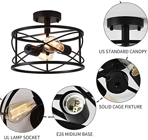 Stylish Design: The ceiling light fixture appearance is with the matte black paint frame, simple and low-key but also retro and elegant. Perfect for all styles of modern houses.